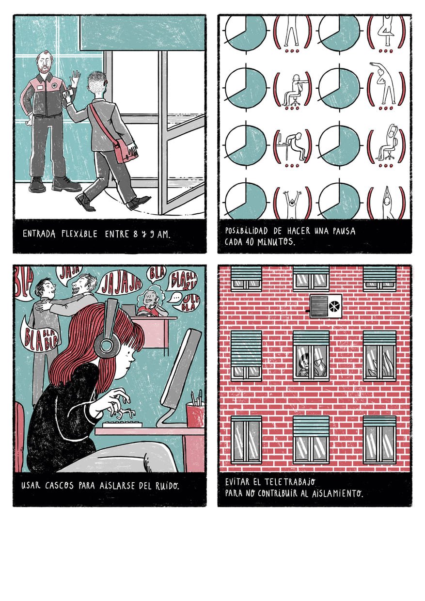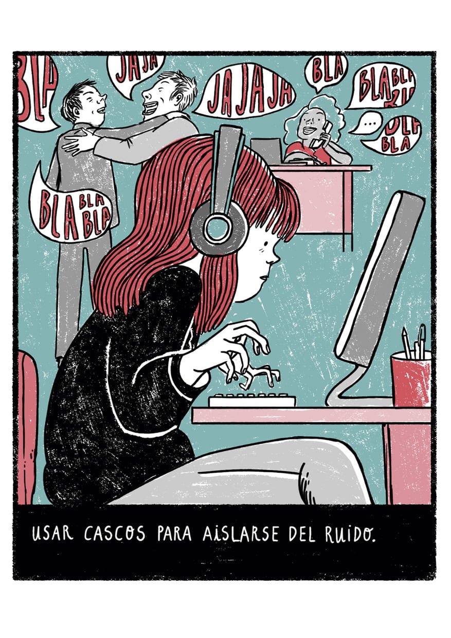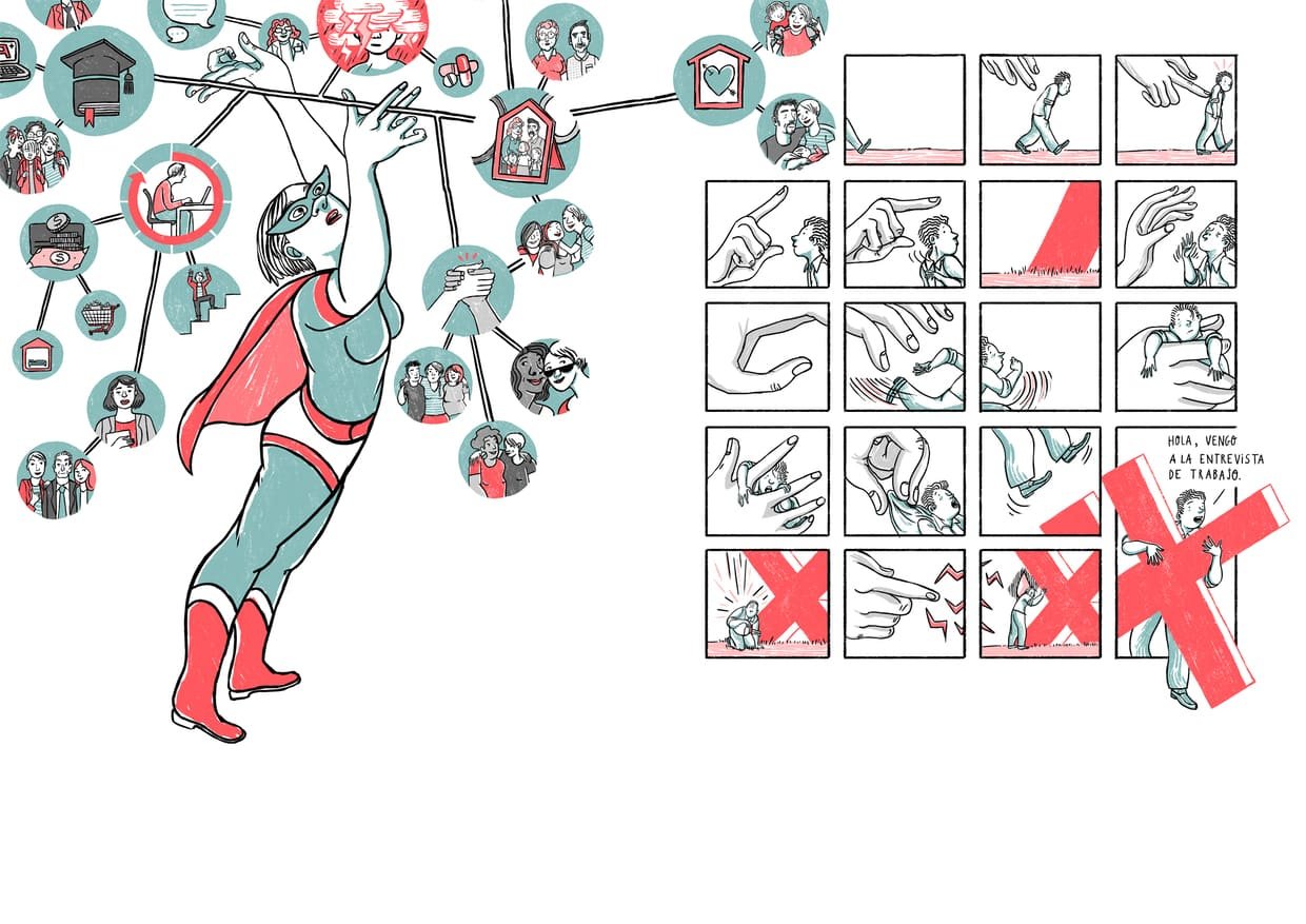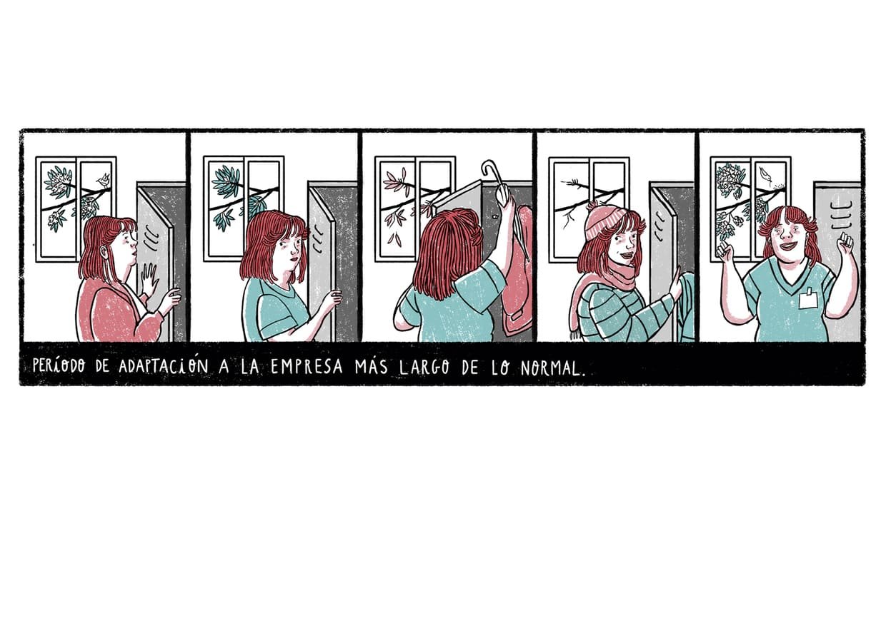 Ilustraciones, Copy y Rotulación para ilustraciones de una guÃa de comunicación dirigida a Departamentos de Recursos Humanos con el fin de mejorar la inclusión laboral de personas con discapacidad psicosocial.