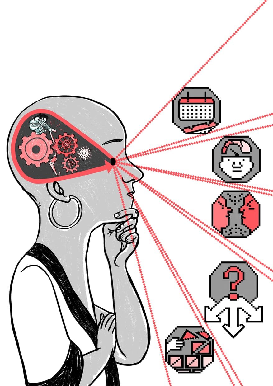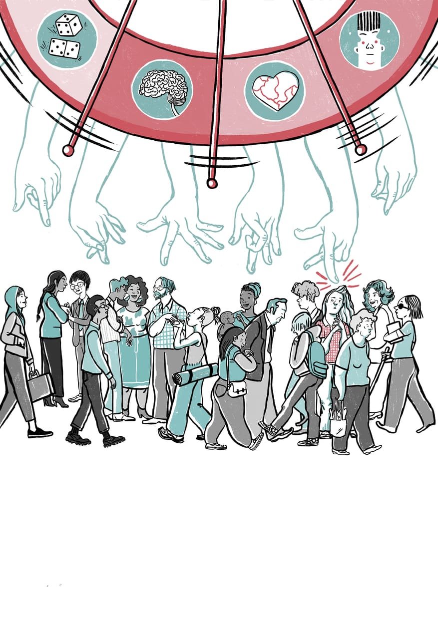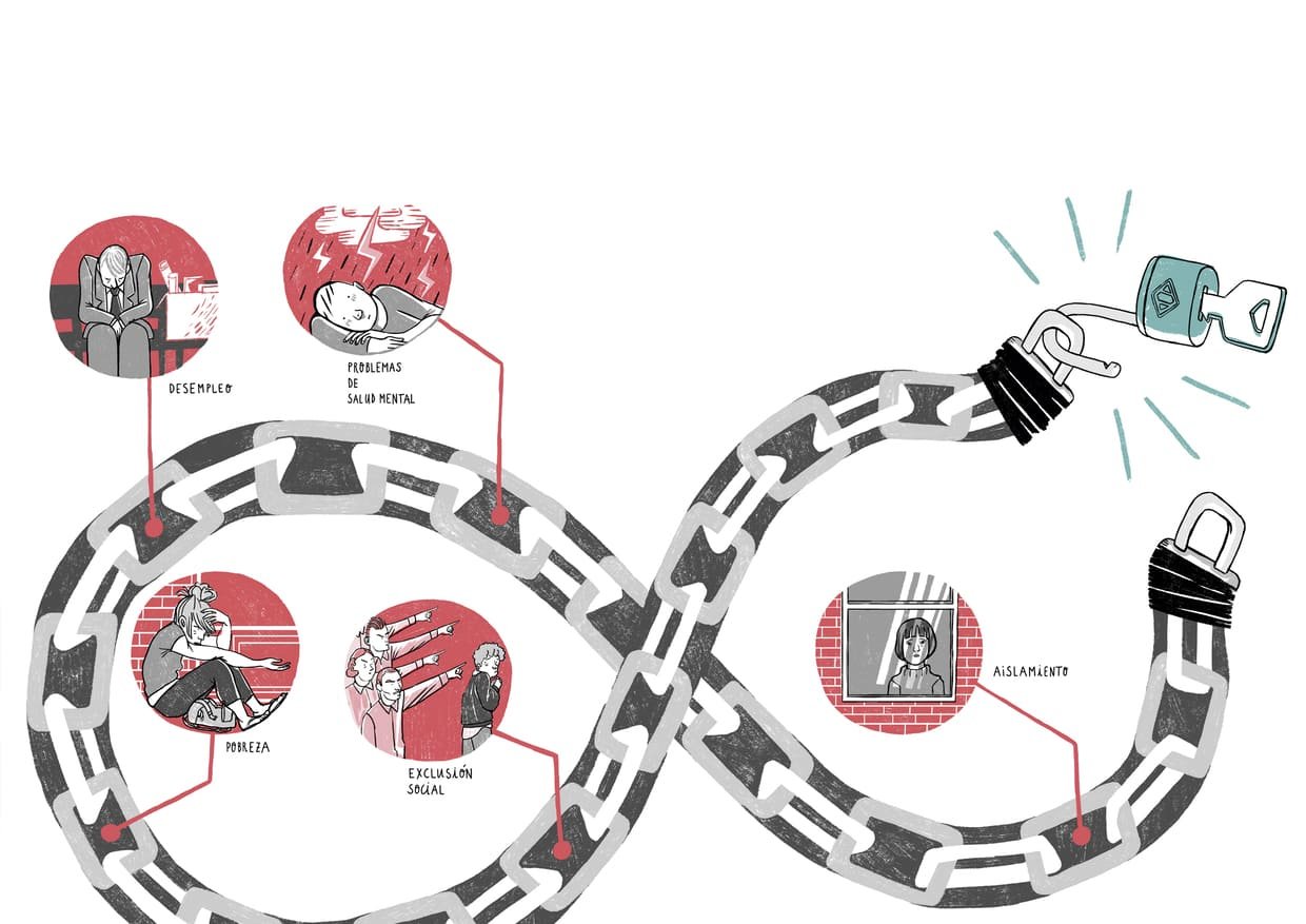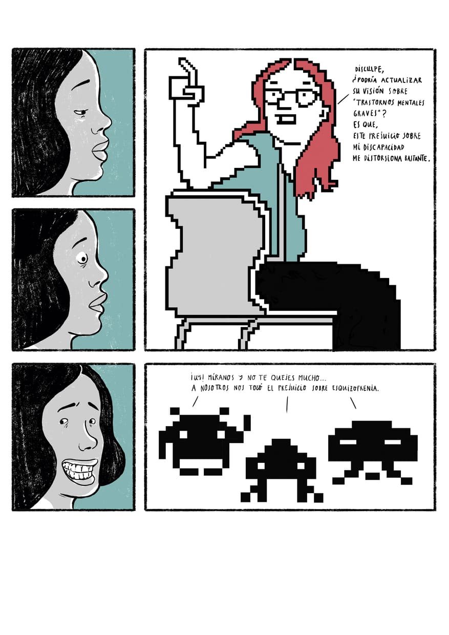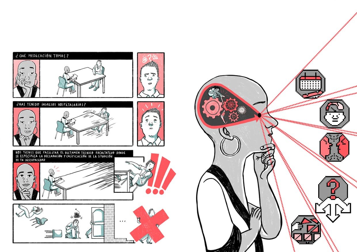 Ilustraciones, Copy y Rotulación para ilustraciones de una guÃa de comunicación dirigida a Departamentos de Recursos Humanos con el fin de mejorar la inclusión laboral de personas con discapacidad psicosocial.